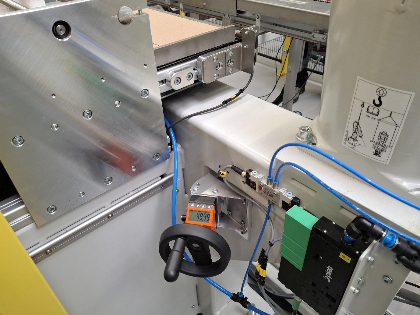 Opisywana maszyna umożliwia automatyzację wkładania absorberów początkowych i końcowych w kartonach o różnych wymiarach – różne grubości, szerokości, długości. Stąd wymagane jest jej przezbrajanie. Linia jest przezbrajana pod inny format 1-2 razy na dobę.